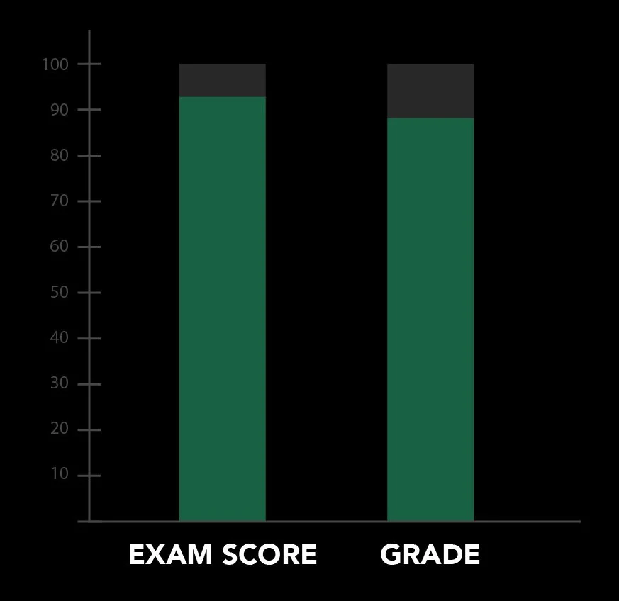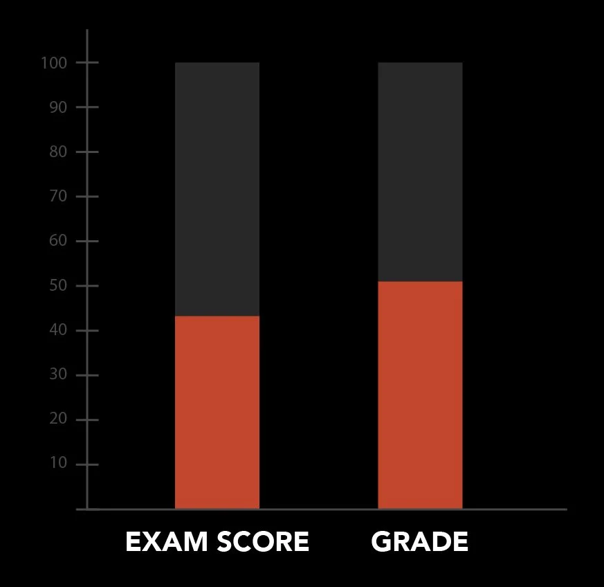(The characteristics of the exam score define the final grade.)